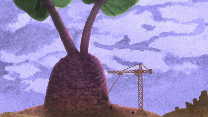 Inspired by the Slavic fairy tale "The Gigantic Turnip", a beetroot grows so big that no one can manage to pull it out of the ground. When a crane operator steps up to help, the prodigious vegetable suddenly strikes back with a vengeance. Chaos ensues, and the army is called in to contain the menace. Alas, amid destruction and fear, a question arises: is raw violence the right response, or is there perhaps another way to pacify the untamed forces of nature?
